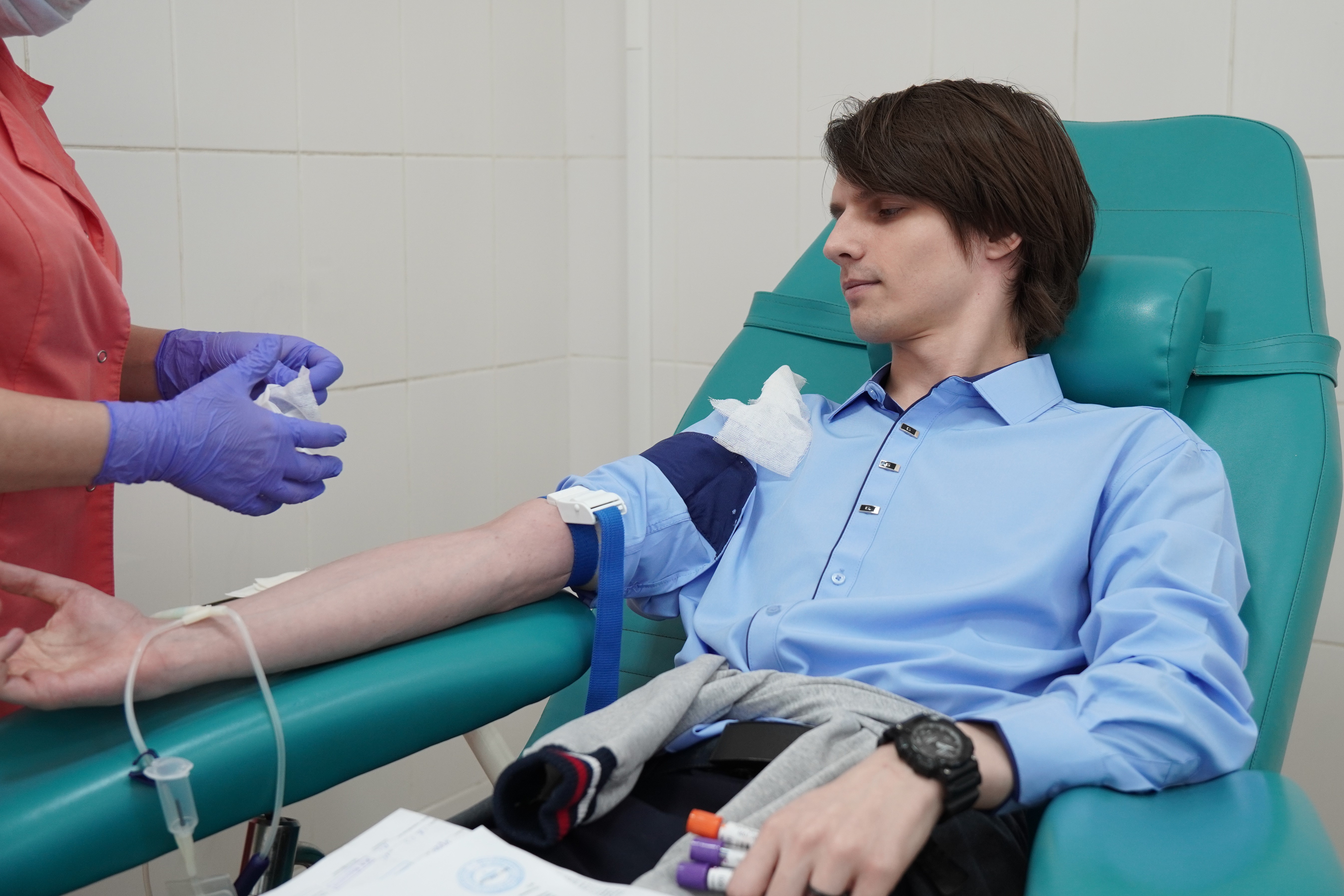 В числе участников — ведущий специалист Артур Шокин, который сдал тромбоциты. Этот компонент крови особенно востребован в медицинской практике: тромбоциты используются при лечении пациентов с онкогематологическими заболеваниями, в том числе лейкозами, а также при восстановлении после химиотерапии и при тяжёлых травмах. При этом срок жизни тромбоцитов в организме составляет всего несколько дней, что обуславливает их постоянную потребность в лечебных учреждениях.